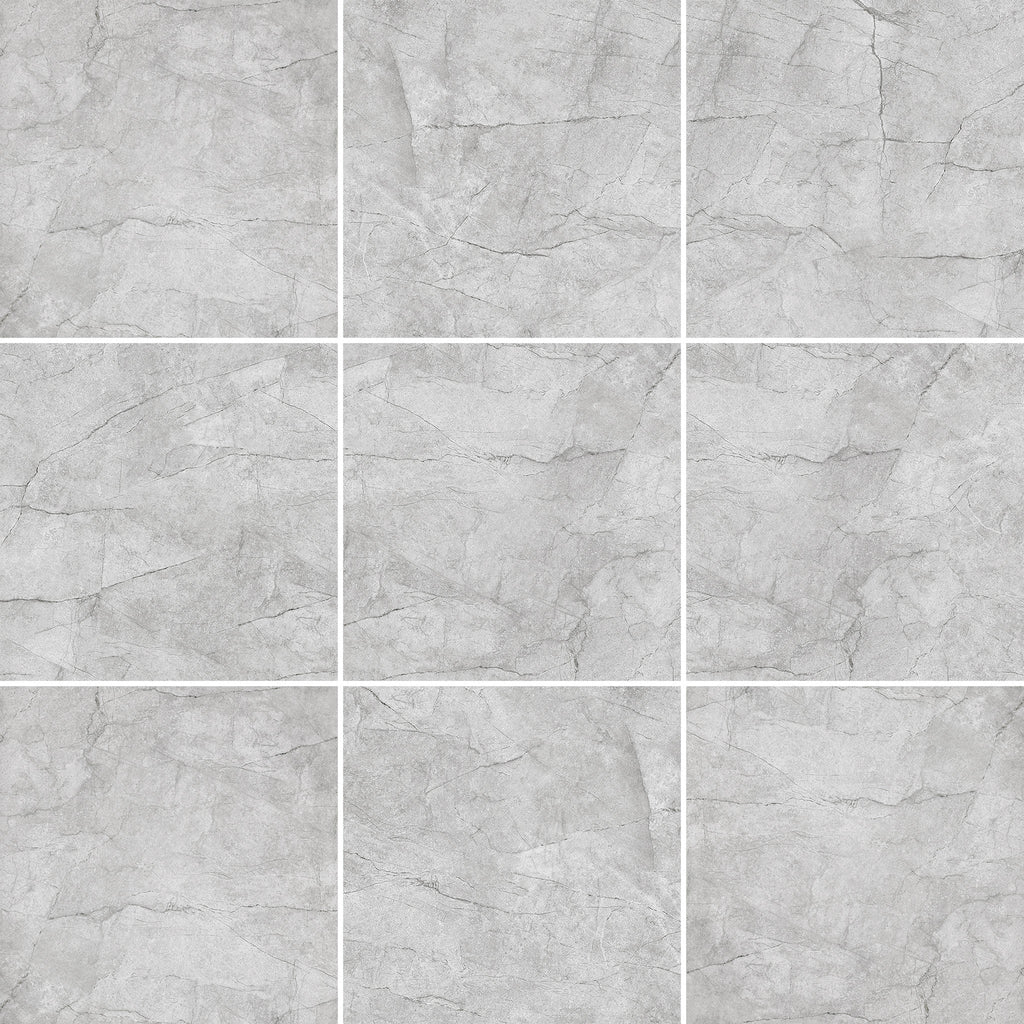 Cloudy Grey features a soft, light grey background enhanced by delicate, natural-looking veining and subtle cloud-like patterns. Its understated elegance creates a calming and modern aesthetic, reminiscent of gentle stone textures. This versatile design is ideal for creating a bright, spacious feel in interiors, whether used on floors or walls.