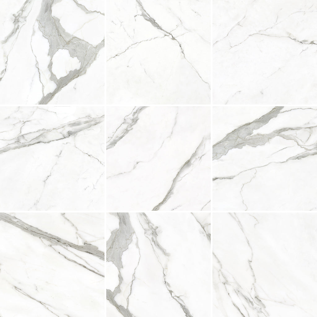Milano Bianco features a refined white base accented by soft, natural-looking grey veining. Its marble-like patterns are different among different faces, ranging from delicate wisps to more pronounced, flowing streaks, giving it a luxurious yet organic appearance. The subtle variation across tiles enhances the elegance and realism, making it an ideal choice for both classic and contemporary interiors seeking a sophisticated marble effect.