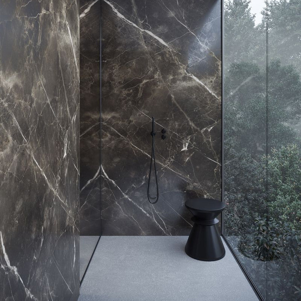 Forge Eleganza radiates modern sophistication with its deep smoky charcoal base enriched by fine white and silver veining. The intricate patterns resemble the strength of forged stone, bringing both drama and refinement to interiors. Its bold yet timeless look makes it a perfect choice for creating luxurious floors or walls that command attention with effortless elegance.