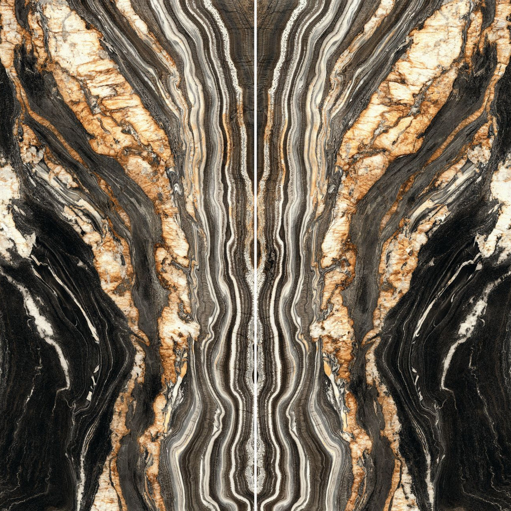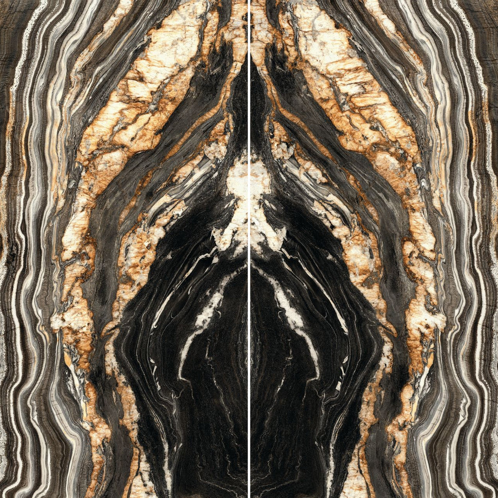 Oro Noir is a dramatic fusion of strength and opulence, with bold black and smoky grey waves streaked by luminous veins of gold and ivory. The striking contrast and fluid movement create the impression of a natural masterpiece, rich with depth and energy. Perfect for statement walls or feature floors, Oro Noir brings a sense of grandeur and artistic elegance to any space.