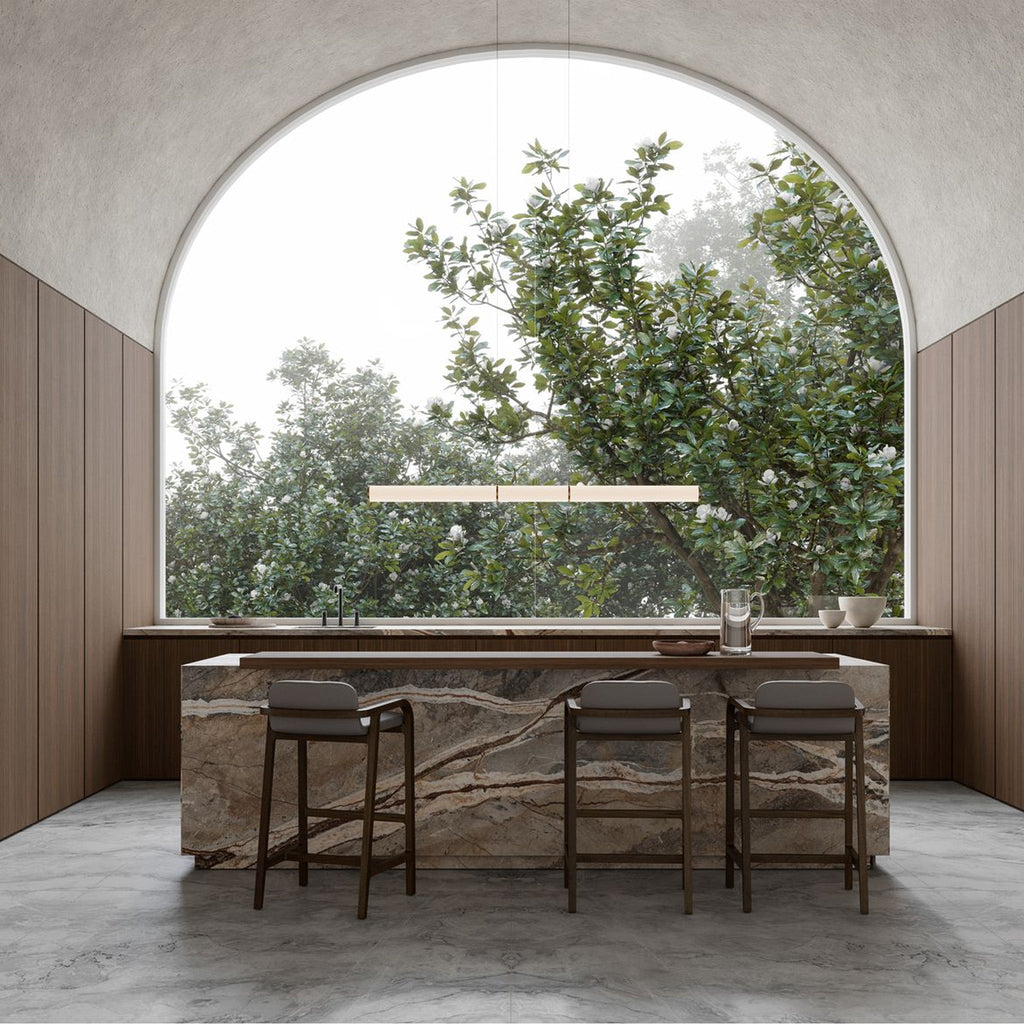 Atlantic Ocean captures the serene beauty of natural stone with its soft, misty grey tones and fluid, wave-like veining. Its organic patterns evoke the gentle movement of ocean currents, bringing a sense of calm sophistication to any space. Perfect for creating elegant and tranquil interiors.