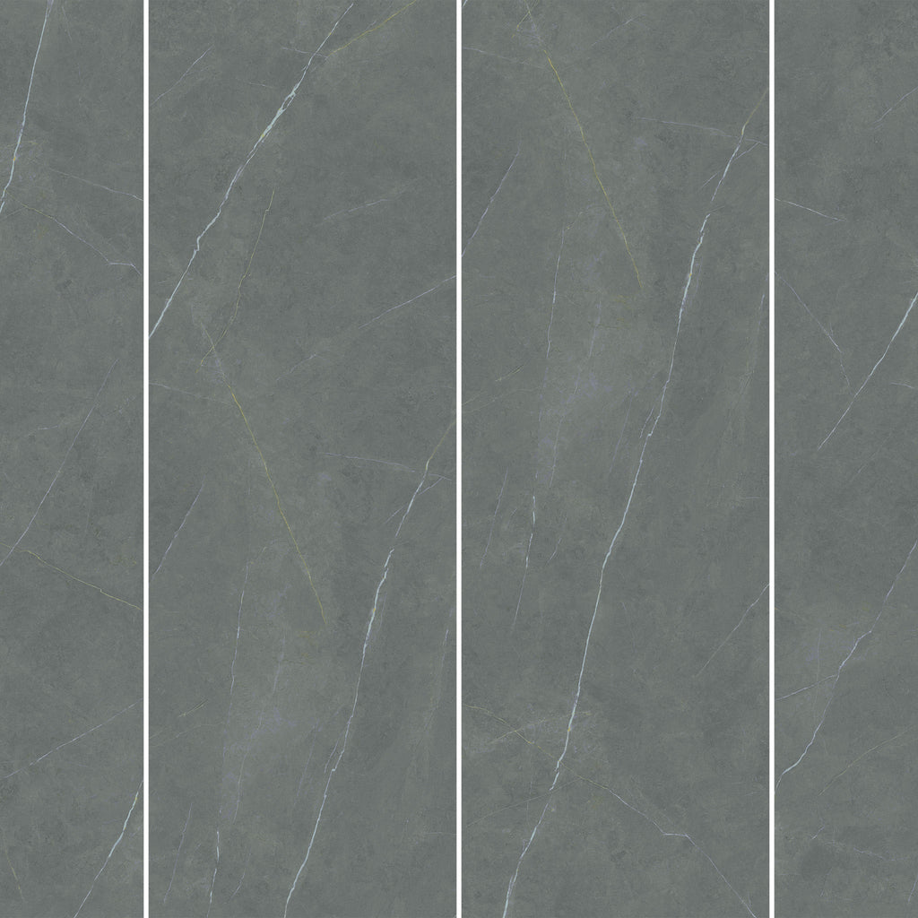 Armani Grey features a refined and understated pattern with a deep, smoky grey base, delicately intersected by fine veining in shades of white, pale blue, and subtle hints of gold. The soft, natural texture and gentle marbling create a sophisticated stone-like appearance, perfect for adding a modern yet timeless elegance to any interior space. Ideal for floors or walls seeking a sleek, minimalist aesthetic with a luxurious edge.