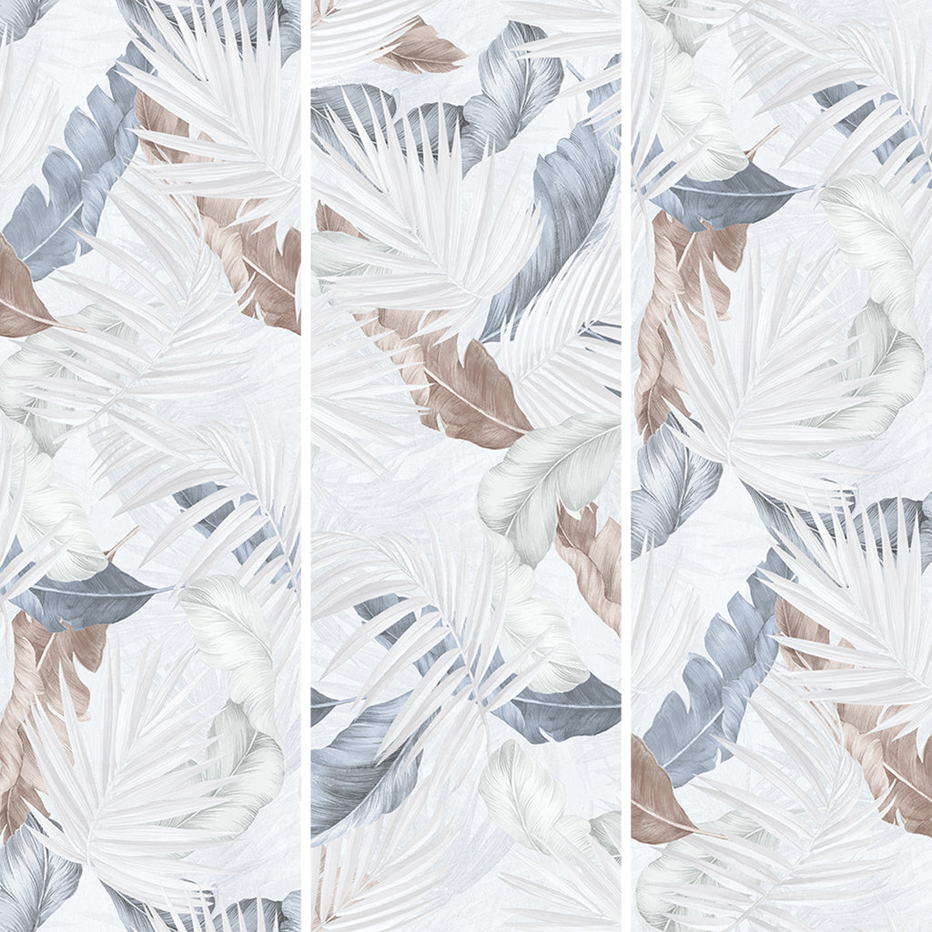 Romantic Youth tile captures the essence of delicate botanical beauty with its soft, pastel-toned foliage and graceful layering of tropical leaves. The design blends muted blues, sage greens, and warm beiges against a subtle textured background, creating a dreamy, ethereal ambiance. Perfect for adding a serene and artistic touch to any interior space, this tile evokes a sense of gentle sophistication and contemporary nature-inspired charm.